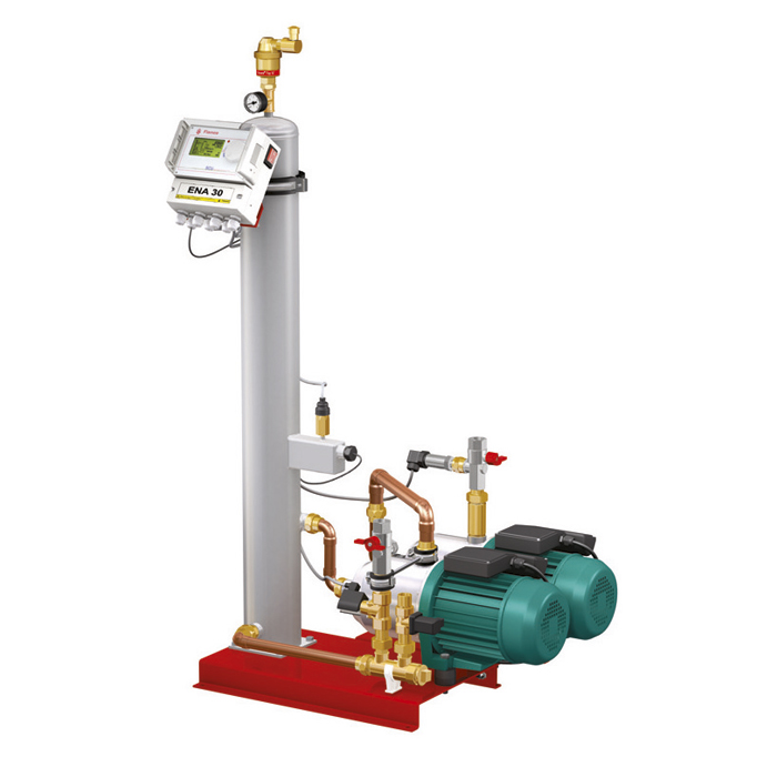 ENA – ENA jest urządzeniem odgazowującym działającym w oparciu o stopnie ciśnienia. Wykorzystanie odgazowywania próżniowego zapewnia wysoką wydajność procesu odgazowywania w instalacjach zamkniętych. Ponadto ENA zapewnia automatyczne uzupełnianie instalacji po odgazowaniu wody uzupełniającej.